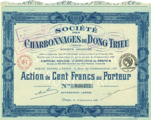 Sté des Charbonnages du Dong-Trieu (Tonkin) (Act 100 F)(Modele 2)