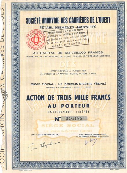 S.A. des Carrières de l'Ouest (Ets BARRIER) (Act 3000 F)