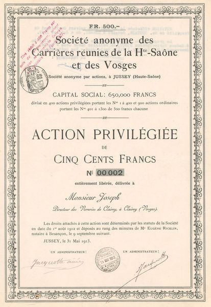 S.A. des Carrières Réunies de la Hte-Saône et des Vosges (Act 500 F)