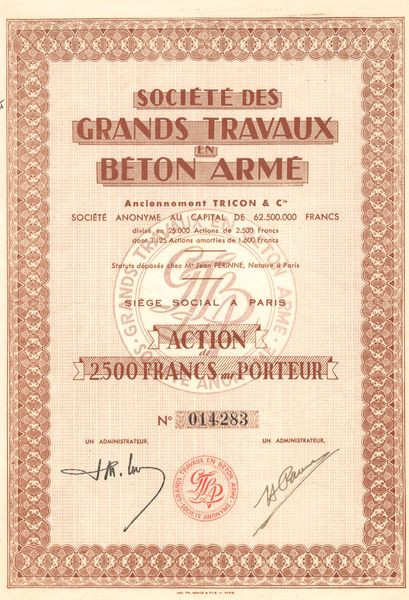 Sté des Grands Travaux en Béton Armé - Anciennement Tricon & Cie (Act 2500 F)