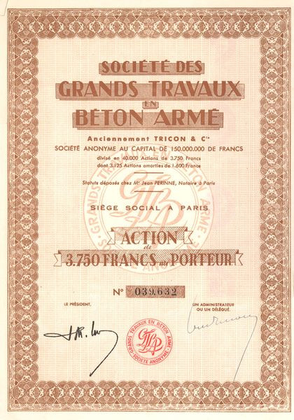 Sté des Grands Travaux en Béton Armé - Anciennement Tricon & Cie (Act 3750 F)