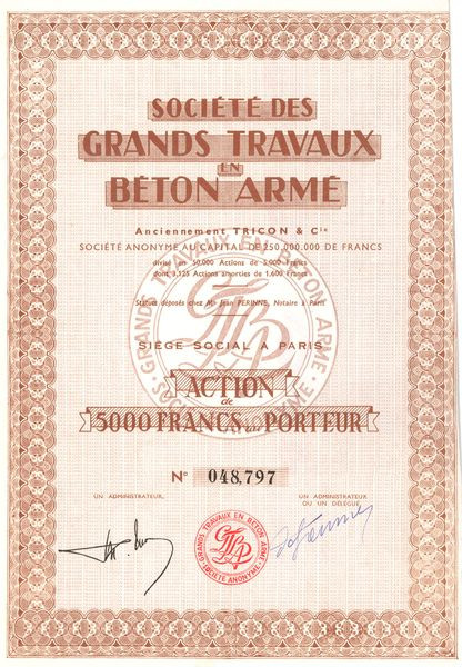 Sté des Grands Travaux en Béton Armé - Anciennement Tricon & Cie (Act 5000 F)