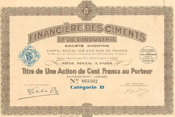 Financière des Ciments et de l'Industrie (Titre 01 Act 100 F)
