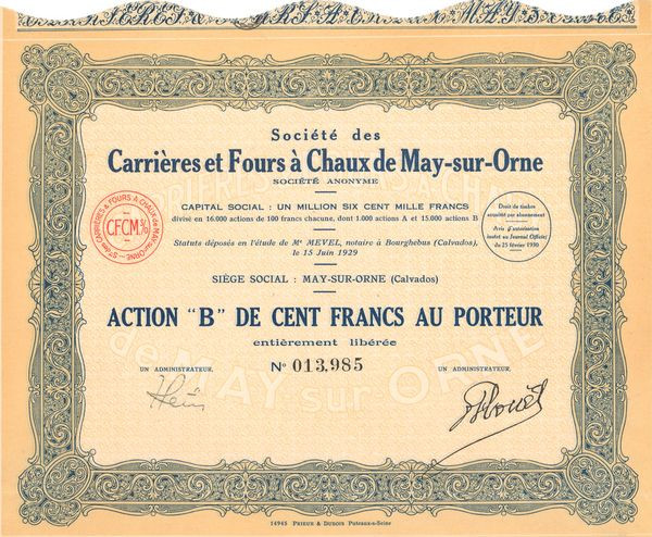 Sté des Carrières et Fours à Chaux de May-sur-Orne (Act B 100 F)