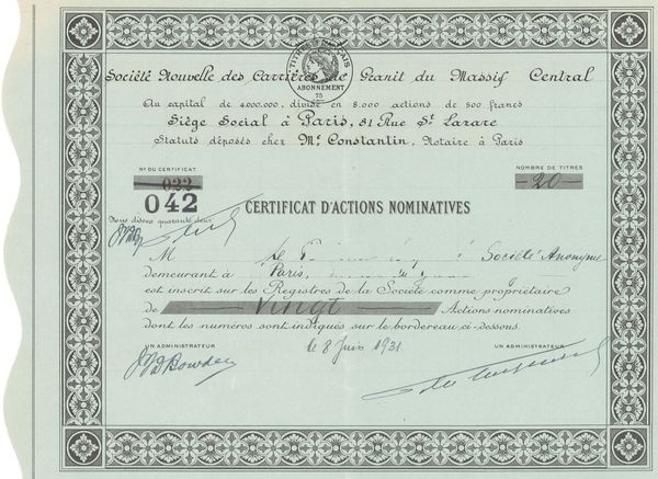 Sté Nouvelle des Carrières de Granit du Massif Central (Titre 20 Act Nomin)