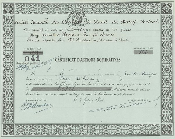 Sté Nouvelle des Carrières de Granit du Massif Central (Titre 100 Act Nomin)