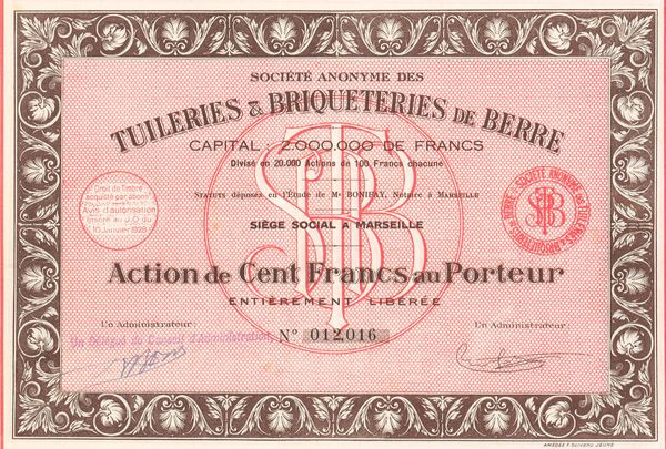 S.A. des Tuileries & Briqueteries de Berre (Act 100 F)