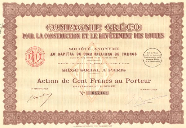 Cie Gréco pour la Construction et le Revétement des Routes (Act 100 F)