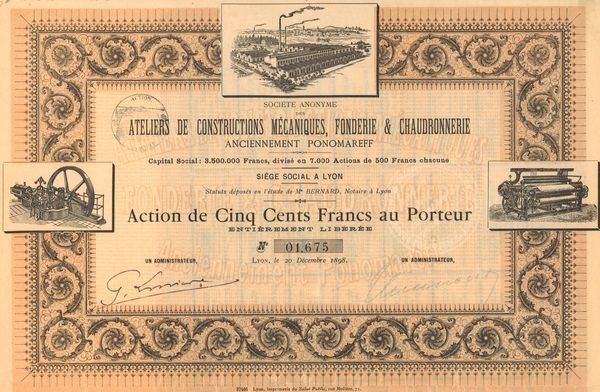 S.A. des Ateliers de Constructions Mécaniques. Fonderie & Chaudronnerie - Anciennement Ponomareff (Act 500 F)