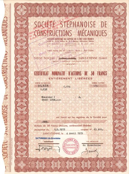 Sté Stéphanoise de Constructions Mécaniques (Certif Nomin Act 50 F)