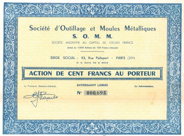 Sté d'Outillages et Moules Métalliques S. O. M. M. (Act 100 F)