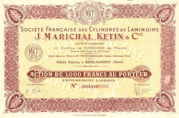 Sté Française des Cylindres de Laminoirs J.Marichal. Ketin & Cie (Act 1000 F)