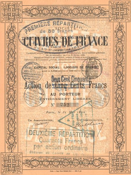 Sté des Cuivres de France - 1892 (Orange) (Act 500 F)
