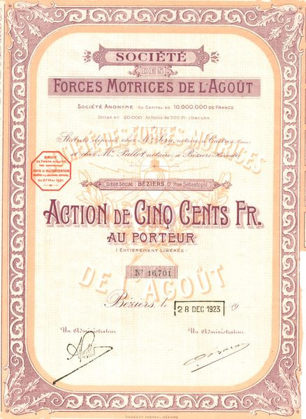 Sté des Forces Motrices de l'Agoût (Act 500 F)