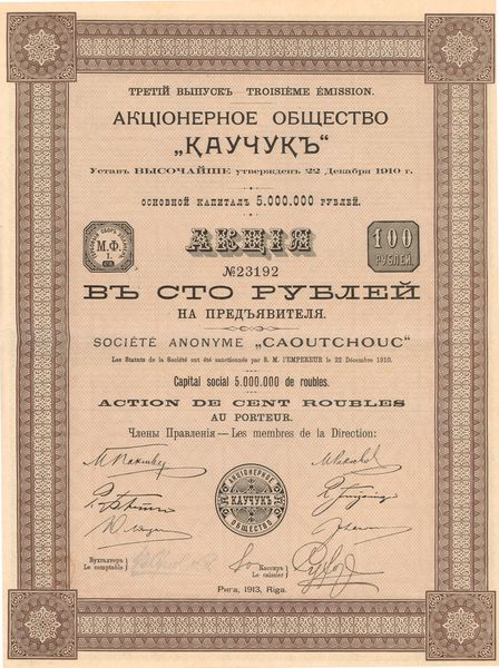 S.A. "Caoutchouc" (Act 100 Roubles)