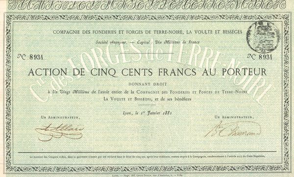Cie des Fonderies et Forges de Terre-Noire. la Voulte et Bessèges (Act 500 F)