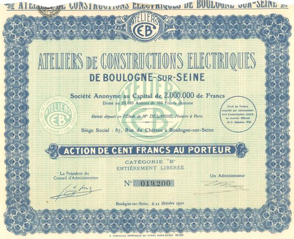 Ateliers de Constructions Electriques de Boulogne-sur-Seine (Act 100 F)