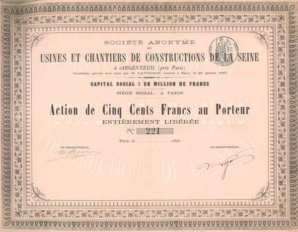 S.A. des Usines et Chantiers de Constructions de la Seine à Argenteuil (près Paris)(Act 500 F)