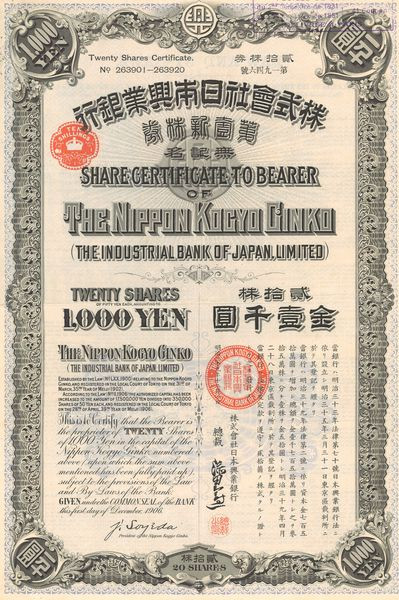 The Nippon Kogyo Ginko (The Industrial Bank of Japan Ltd)(Titre 20 Act 1000 Yen)