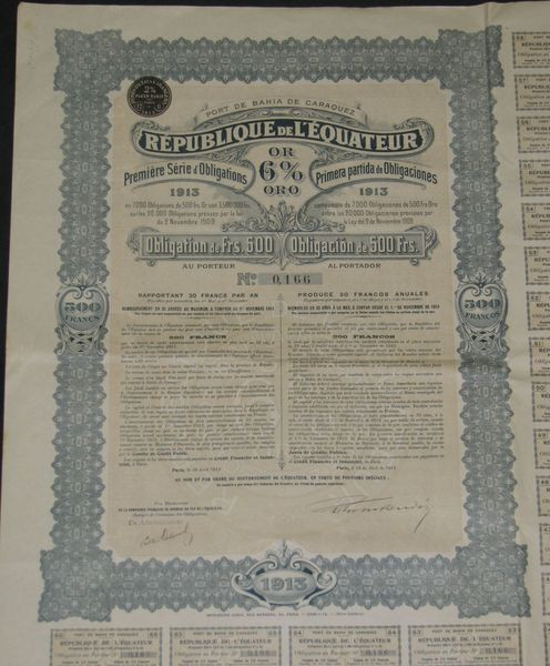 République de l'Equateur - 1ère série d'obligations 6 % or 1913