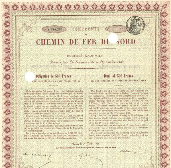 Cie du Chemin de Fer du Nord (Obl 500 F)(Perforée)