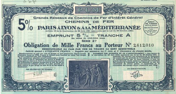 Grands Réseaux de Chemins de Fer d'Intérêt Général - Chemins de Fer de Paris à Lyon et à la Méditerranée - Emprunt 5% 1930 Tranc