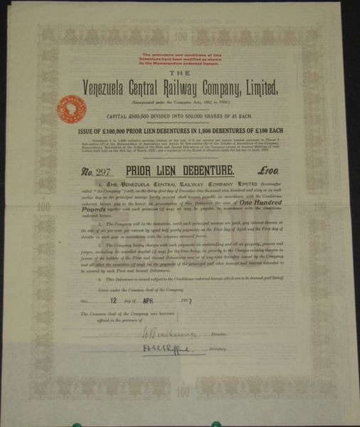 The Venezuela Central Railway Cy Ltd (Prior Lien Debenture)