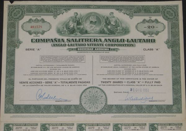 Cia Salitrera Anglo-Lautaro (Anglo-Lautaro Nitrate Corporation) (Titre 20 Act $ 2.40)