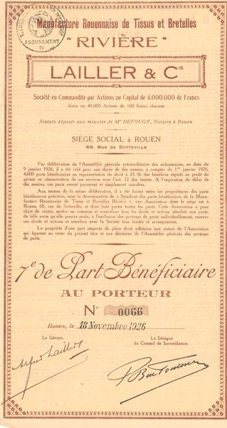 Manufacture Rouennaise de Tissus et Bretelles "Rivière" Lailler & Cie (7ème de PB)