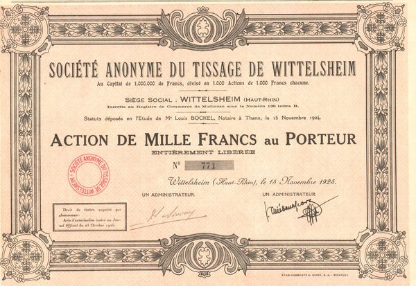 S.A. du Tissage de Wittelsheim (Act 1000 F)