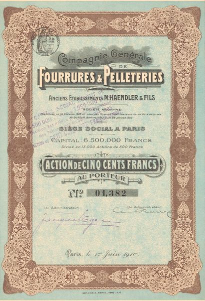 Cie Gale de Fourrures & Pelleteries - Anc Ets N.Haendler & Fils (Act 500 F)