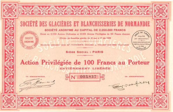 Sté des Glacières et Blanchisseries de Normandie (Act P 100 F)