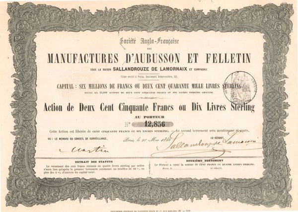 Sté Anglo-Française des Manufactures d'Aubusson et Felletin sous la Raison Sallandrouze de Lamornaix et Cie (Act 250 F)