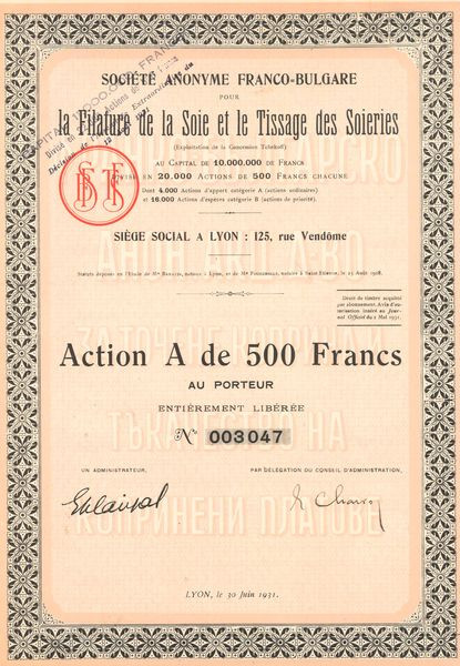 S.A. Franco-Belgare pour la Filature de la Soie et le Tissage des Soieries (Exploitation de la Concession Tchekoff) (Act A 500 F