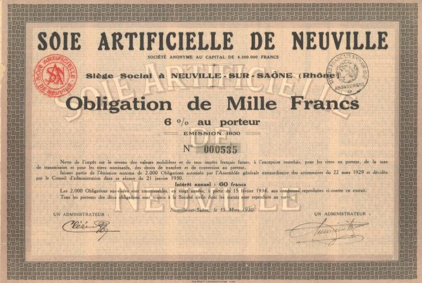 Soie Artificielle de Neuville (Obl 1000 F 6%)