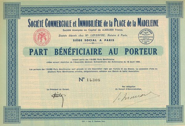 Sté Commerciale et Immobilière de la Place de la Madeleine S.A. (PB)