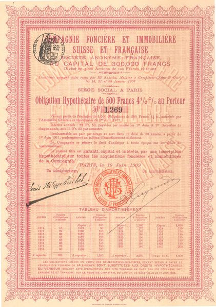 Cie Foncière et Immobilière Suisse et Française (Obl 500 F 4% 1/2)