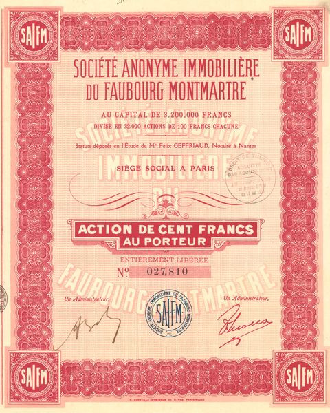 S.A. Immobilière du Faubourg Montmartre (Act 100 F)