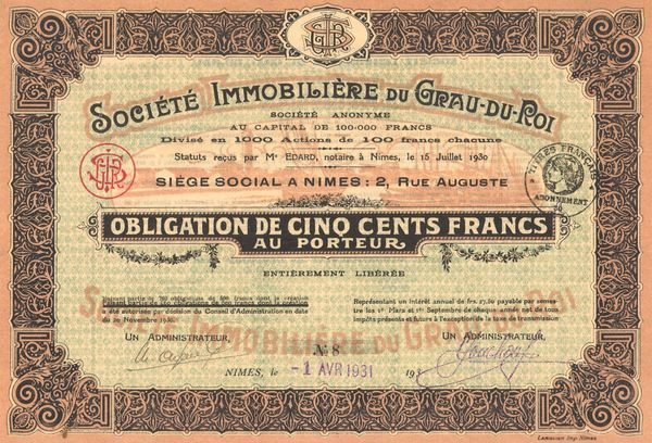 Sté Immobilière du Grau-du-Roi (Obl 500 F)