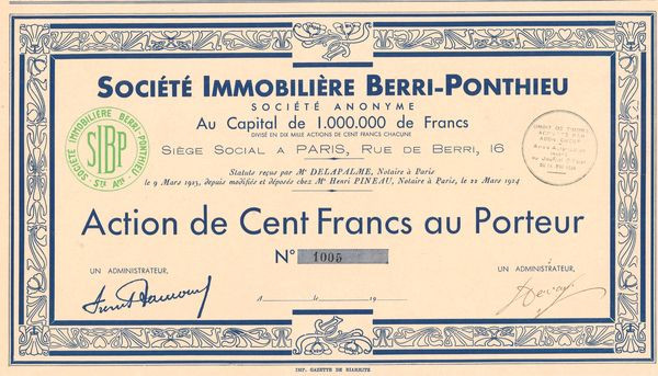 Sté Immobilière Berri-Ponthieu (Act 100 F) (Modele 2)