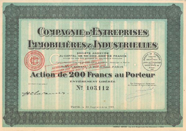 Cie d'Entreprises Immobilières & Industrielles (Act 200 F)