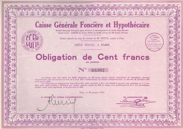 Caisse Générale Foncière et Hypothécaire (Obl 100 F)