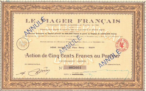La Viager Français Anciennement Sté Immobilière et Foncière de l'Est (Act 500 F)
