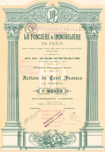 La Reconstitution Anciennement La Foncière & Immobilière de Paris (Act 100 F)