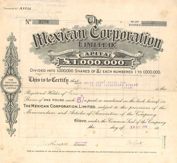 The Mexican Corp Ltd (Titre 09 Act 1£)