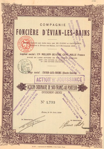 Cie Foncière d'Evian-Les-Bains (Act de Jouissance)