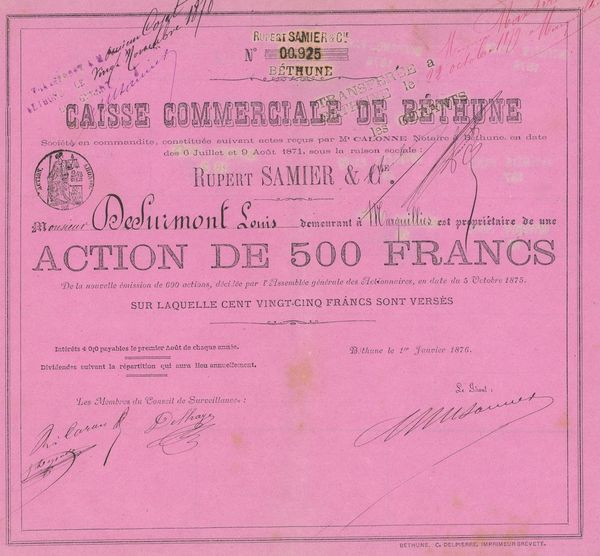 Caisse Commerciale de Béthune (Rose)(Act 500 F)