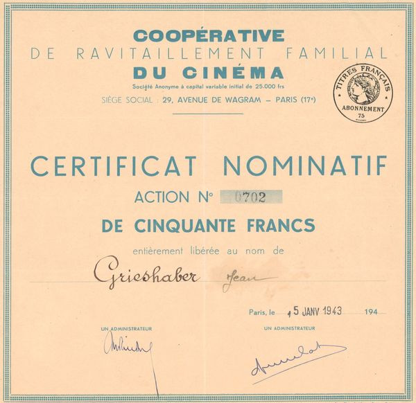 Coopérative de Ravitaillement Familial du Cinéma (Certif Nomin Act 50 F)