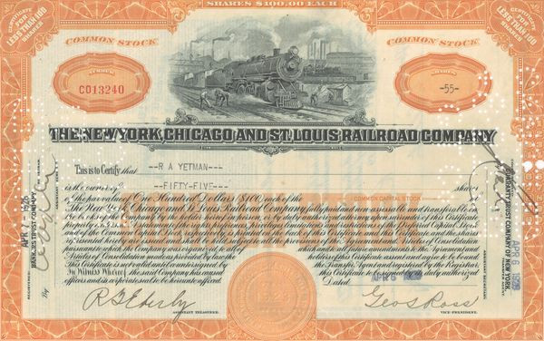 The New York. Chicago and St.Louis Railroad Cy (Titre 55 Act 100$)