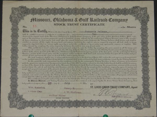 Missouri. Oklahoma & Gulf Railroad Cy (Certif Nomin Titre 02 Act)
